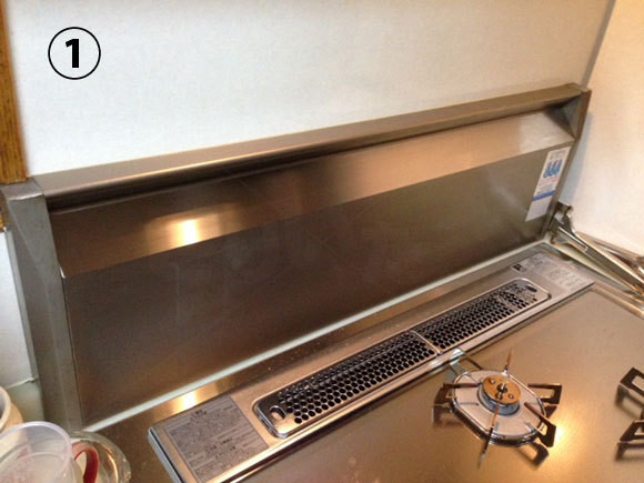 それにより旧コンロの排気カバーがそのまま残ってしまい(写真3、4:壁面の黒い部分)見栄えも悪く、埃などの侵入を防ぐためステンレス板で穴を塞ぐことを考えました。
