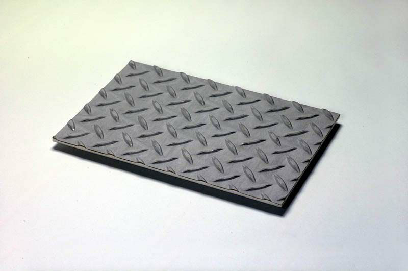 ・ 縞板とは、縞目を45度の角度で連続的に付けいており、どの方向に対しても滑り止めの効果が大変大きい板です。別名「チェッカープレート」とも呼ばれます。