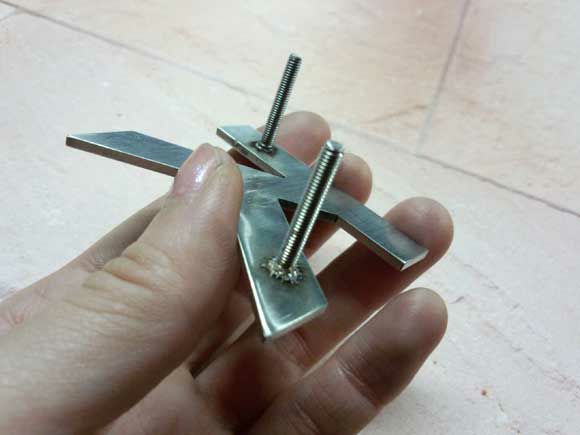・ 設置に便利なスタッドボルト付きの切り文字表札。裏側に付いているボルトを全て壁の中に埋め込みます。ボルトで固定されますので、頑丈に固定する事ができます。見た目は切り文字を貼り付けたような仕上がりとなります。